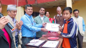 पुरस्कार वितरण गदै यज्ञप्रसाद बस्यालले स्वर्गीय बुवा र माइलो बुवाको नामबाट २०६४ साल देखि उक्त विधालयमा ५,८,१० र १२ कक्षामा अध्यन गर्ने बिद्यार्थीहरुलाइ प्रतेक वर्ष दिने गरेकोमा आगामी वर्षदेखि १ कक्षा देखि १२ कक्षा सम्म उत्कृष्ट हुने बिद्यार्थीलाई पुरस्कृत गर्ने बताउनु भयो ।