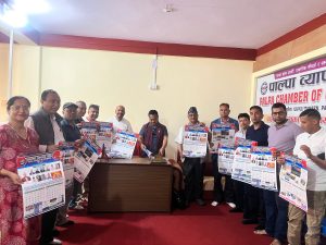 पाल्पा व्यापार संघले नयाँ वर्ष २०८३ सालको भित्तेपात्रो विमोचन तथा शुभकामना आदानप्रदान कार्यक्रम मंगलबार सम्पन्न गरेको छ ।संघको सचिवालयमा आयोजित कार्यक्रममा तानसेन नगरपालिकाका प्रमुख सन्तोषलाल श्रेष्ठ र जिल्ला अध्यक्ष बिष्णुबहादुर कार्कीले संयुक्त रुपमा भित्तेपात्रोको विमोचन गर्नुभएको थियो ।